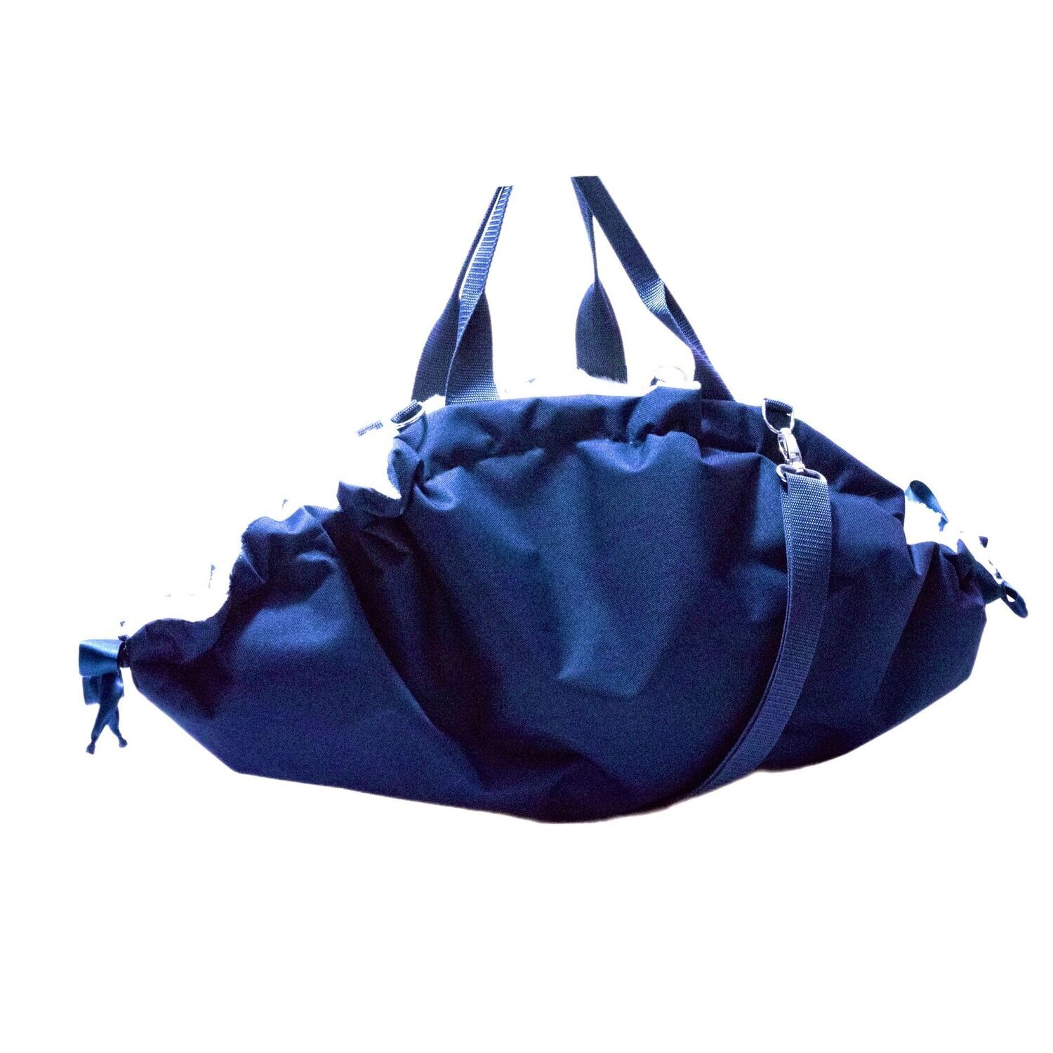 Unsere Deckentasche hat zwei kurze Griffe, ideal zum Tragen in der Hand, sowie einem abnehmbaren Schultergurt. Bei Größe S bekommst du einen 2in1 Gurtgriff, bei Größe M-XL gibts einen "normalen" Schultergurt dazu.